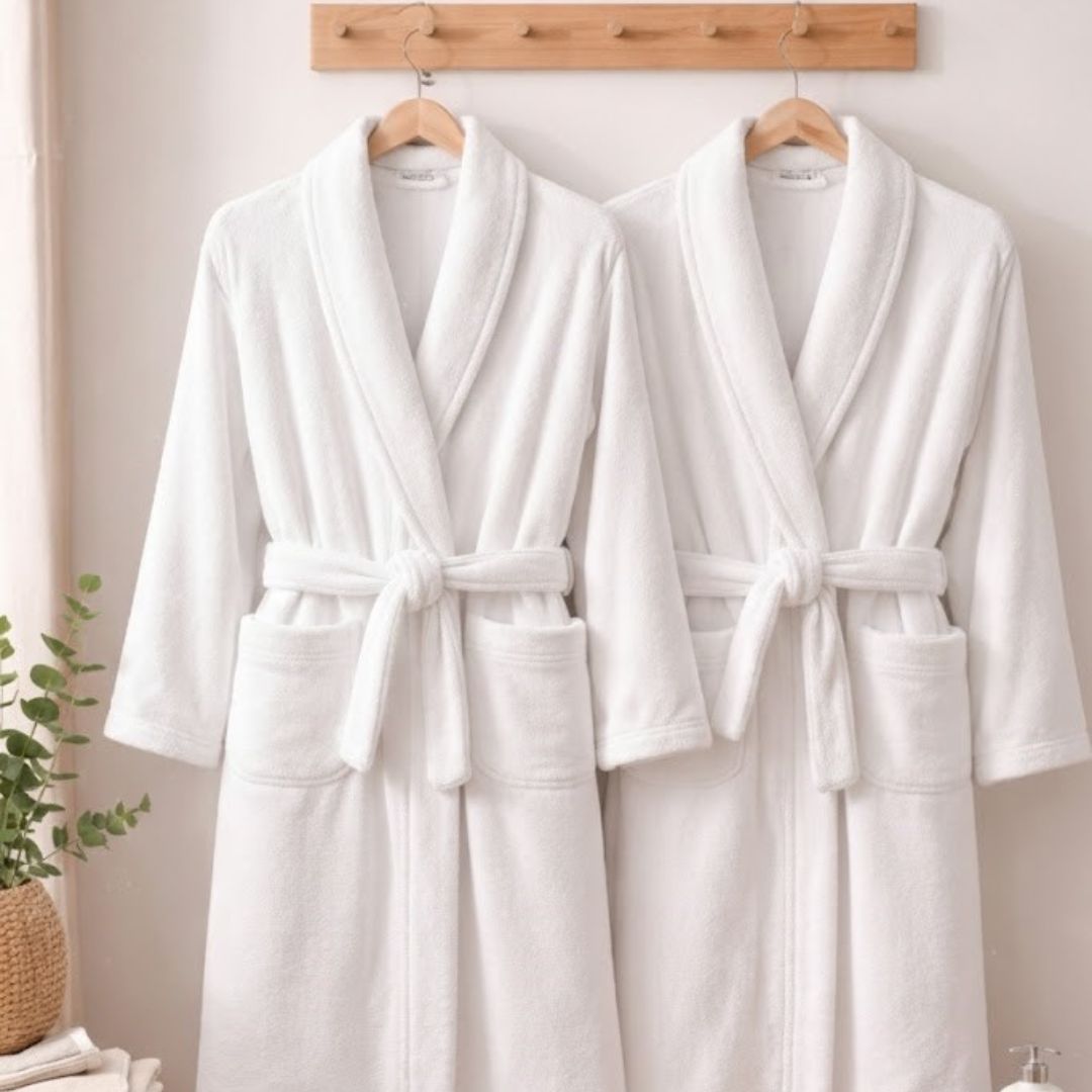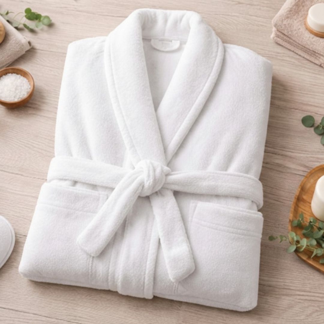 This premium bathrobe is made from high-quality cotton terry fabric, designed to deliver superior comfort and absorbency. Soft to the touch and skin-friendly, it is ideal for extended wear in bathrooms, spas, hotels, and wellness spaces. The durable construction ensures long-lasting performance even after repeated washes, making it suitable for both residential and commercial use.