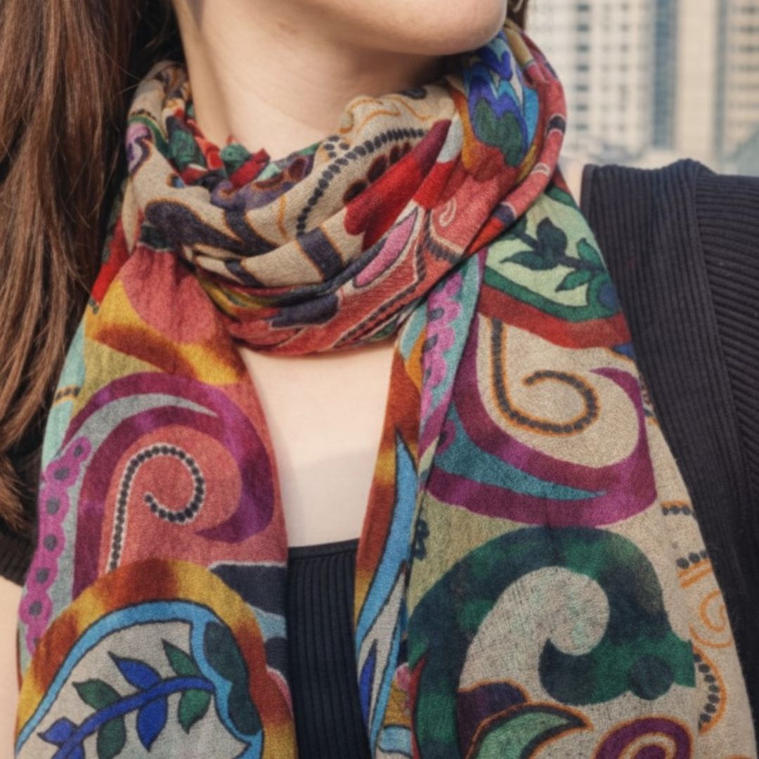 This stole features a classic paisley and floral pattern that adds warmth and elegance to any outfit. Made from soft, lightweight fabric, it offers a comfortable feel with a graceful drape. The rich yet balanced colours make it easy to style with both ethnic and contemporary looks. Ideal for everyday wear as well as festive and formal occasions, this stole is designed for comfort, durability, and timeless appeal.