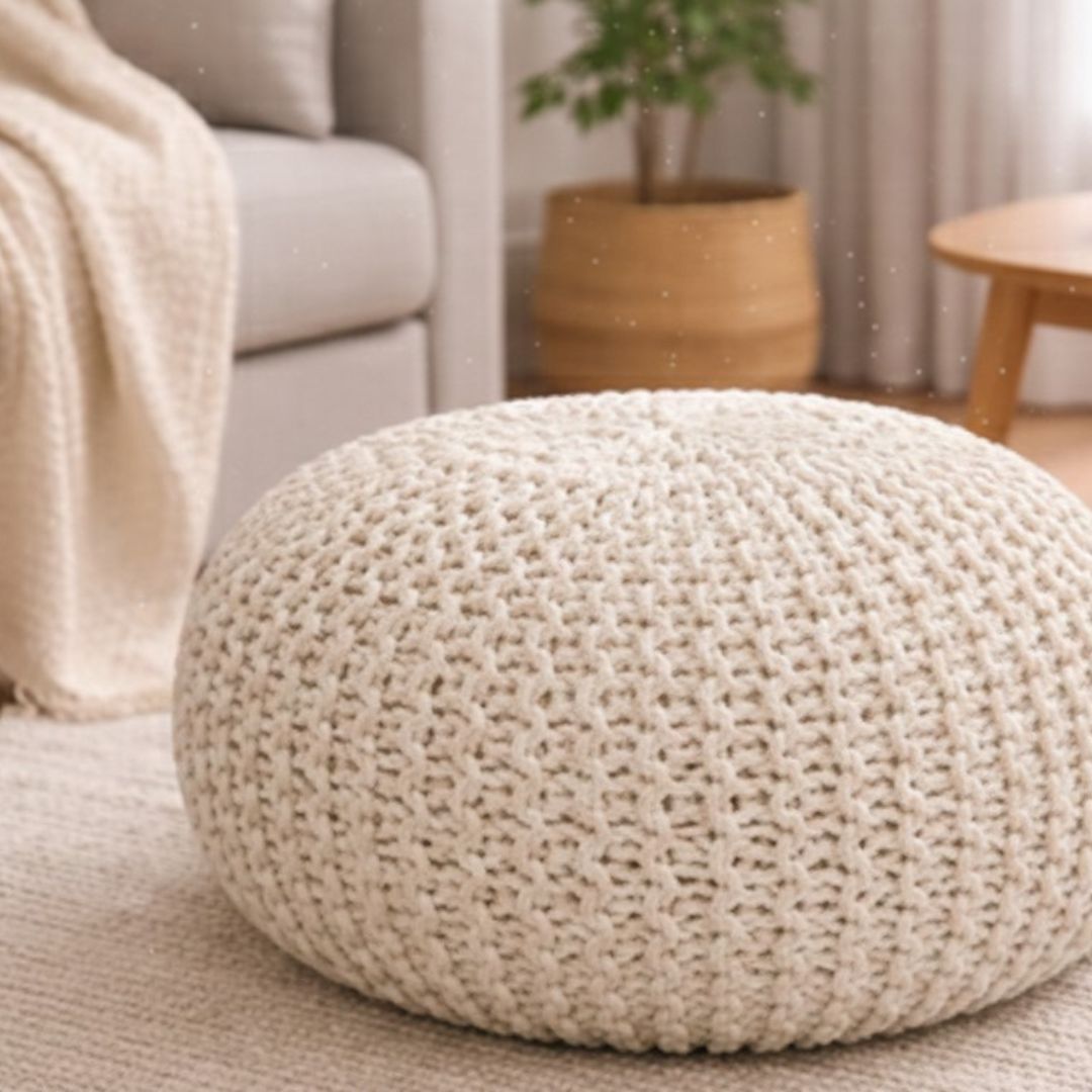 This knitted pouf is designed to bring warmth, texture, and comfort to living spaces. Crafted with a chunky knit construction, it offers a soft yet sturdy form that works perfectly as extra seating, a footrest, or a decorative accent. Its neutral tone and tactile texture make it an easy fit for modern, Scandinavian, and minimalist interiors. Ideal for residential spaces as well as hospitality and export projects, this pouf combines functionality with relaxed elegance. Custom colours, materials, and sizes are available on request.